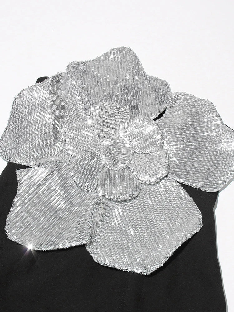 Flower Applique Shiny Dress – Daena